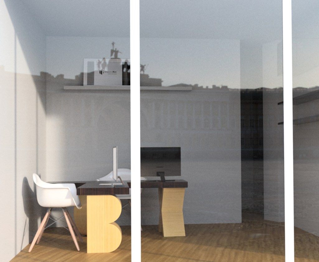 Progetto e realizzazione di un tavolo da lavoro sviluppato su misura, in parallelo al progetto di ristrutturazione della nuova sede, per la TEMPORARY BOX , prima agenzia Italiana specializzata nel settore “Temporary Shop, Pop-up shop e Moving Retail”. Una scrivania dalle forme semplici ma eleganti, che richiamasse il nome dell’agenzia e sfruttasse la sua forma per ospitare, sulla base delle esigenze, una o due postazioni di lavoro.